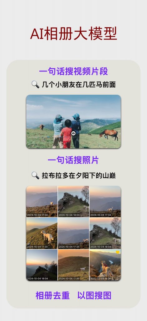 相册大模型,一句话搜图搜视频,照片不上云,隐私有保障🔒