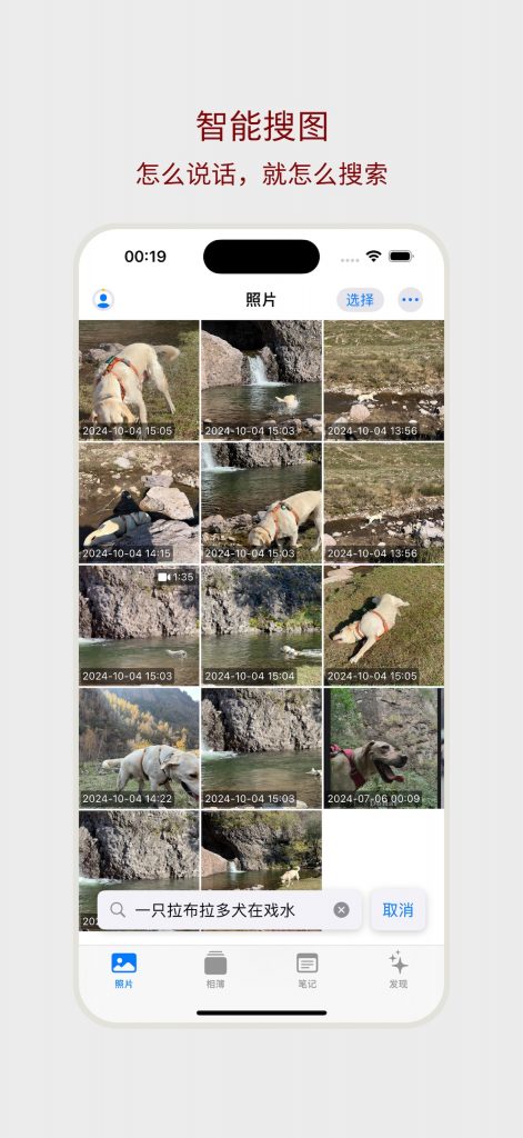 一句话精准找到照片和视频片段,随手拍照、录像、截屏,啥都能搜!内置AI离线搜索,数据不上云,1秒从10万张照片里搜出你要的那张!